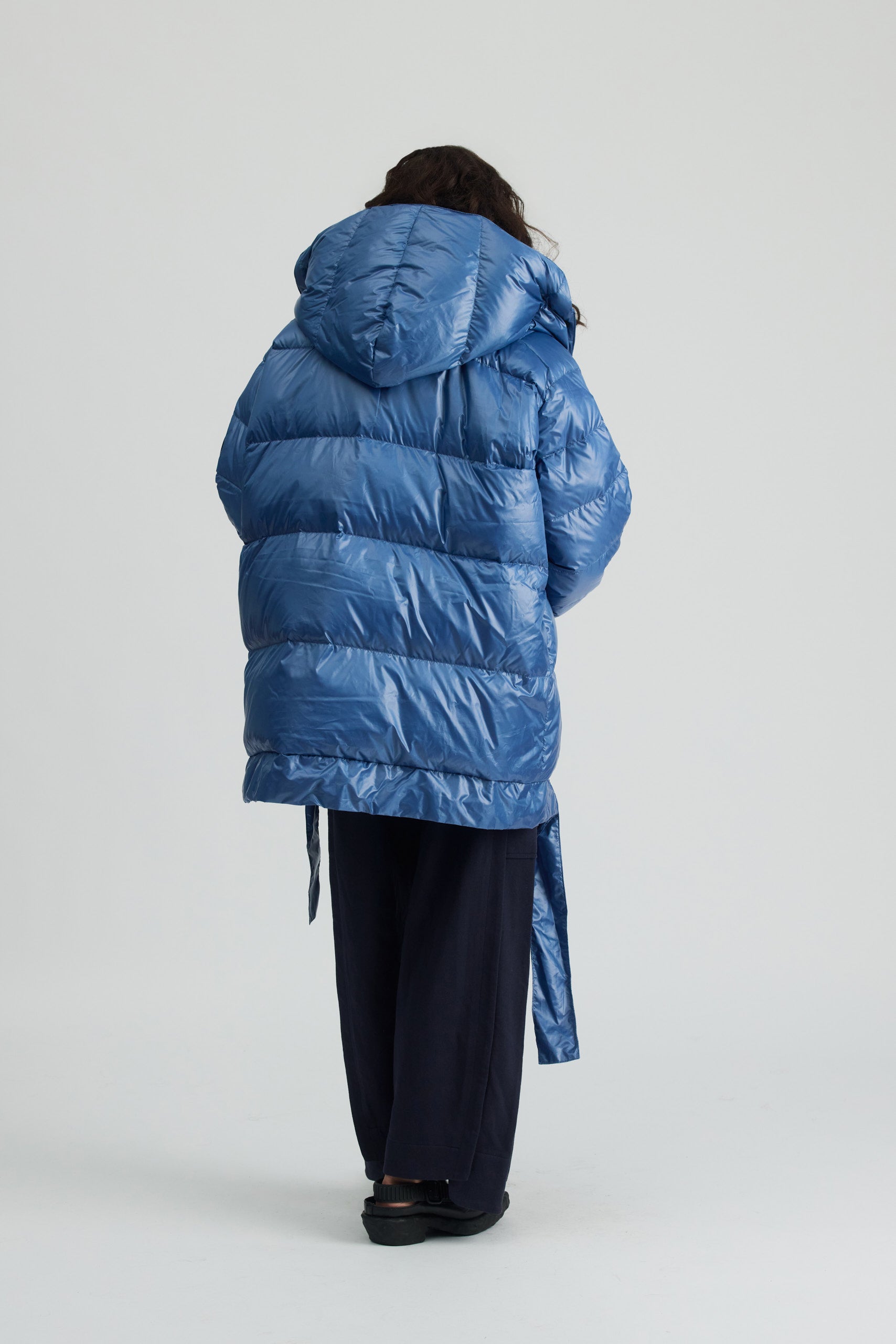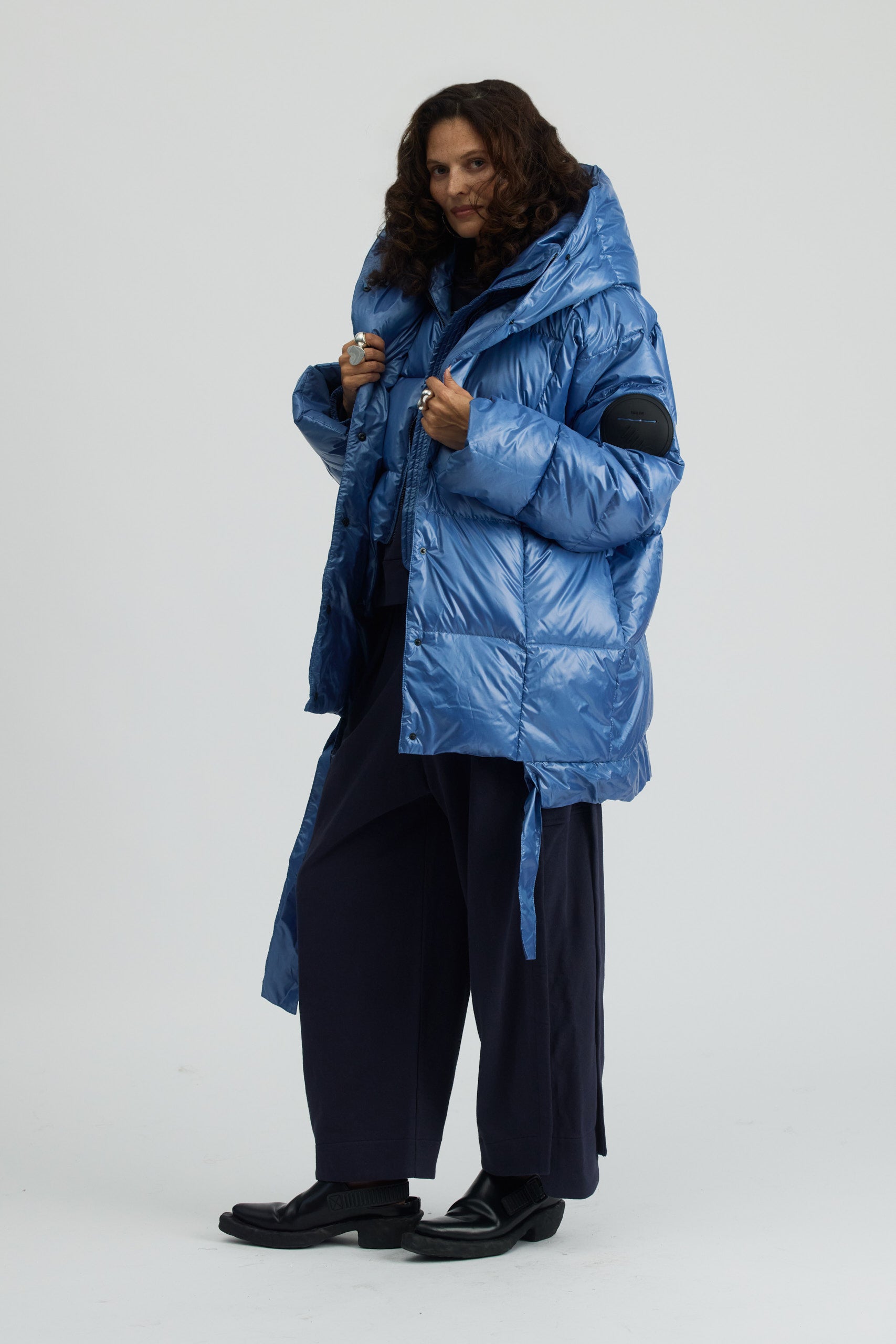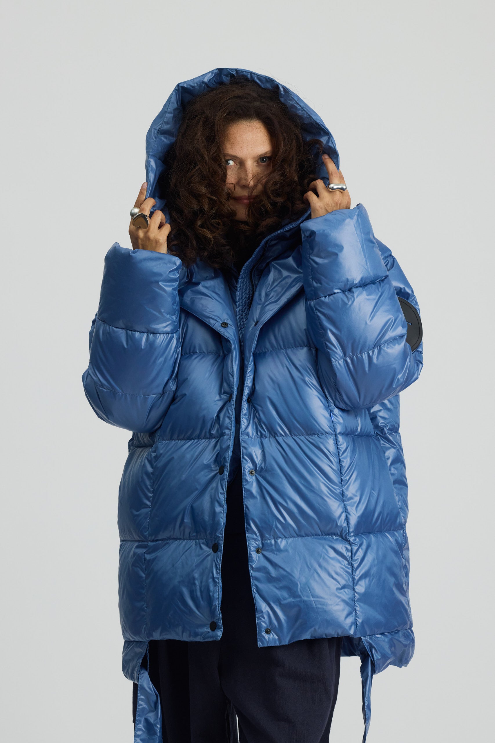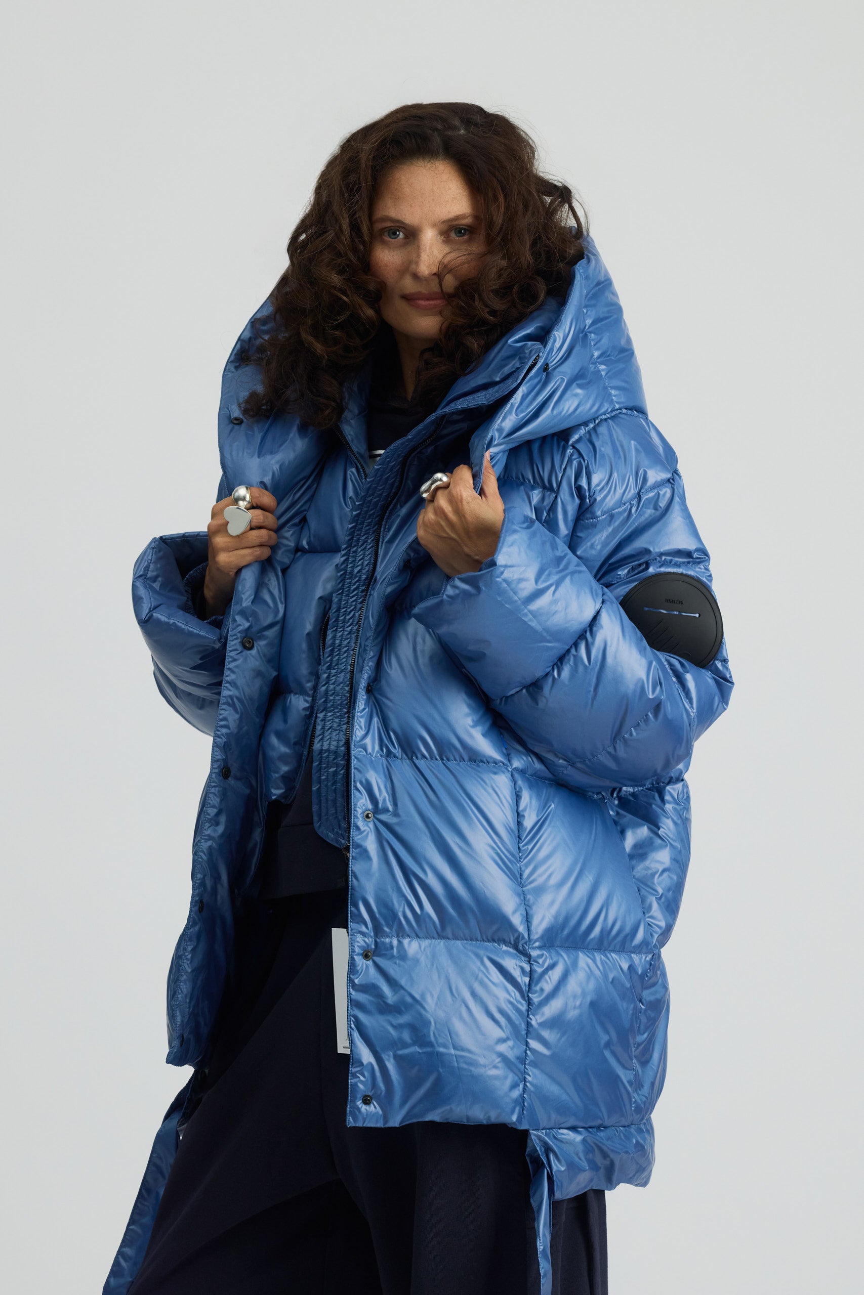 Kurtka puchowa z kapturem o luźnym kroju, z podwójnym zapięciem na napy z wierzchu oraz wewnątrz na zamek, tkanina z satynowym wykończeniem. Przedłużane rękawy, zakończone charakterystycznym dla MMC odszyciem, po bokach są dwie praktyczne kryte kieszenie zapinane na zamek. Na lewym rękawie czarna naszywka z logo. Kurtka wykończona ściągaczem.