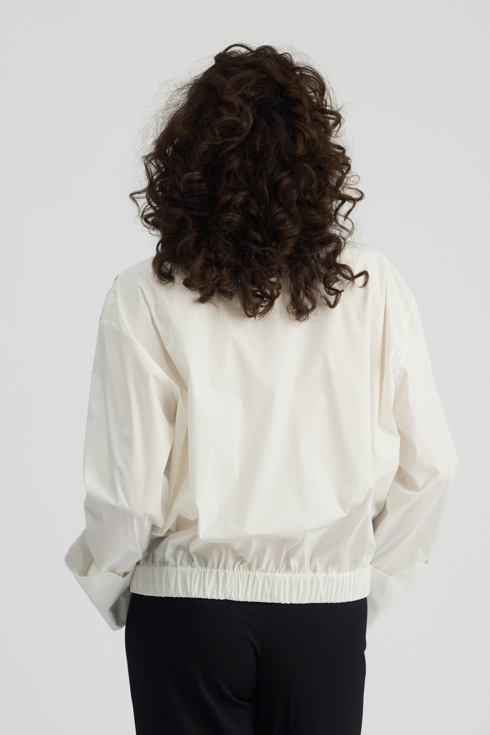 Elegancka koszula zapinana na guziki z wysokimi mankietami, wydłużonym przodem oraz gumką na wysokości bioder.