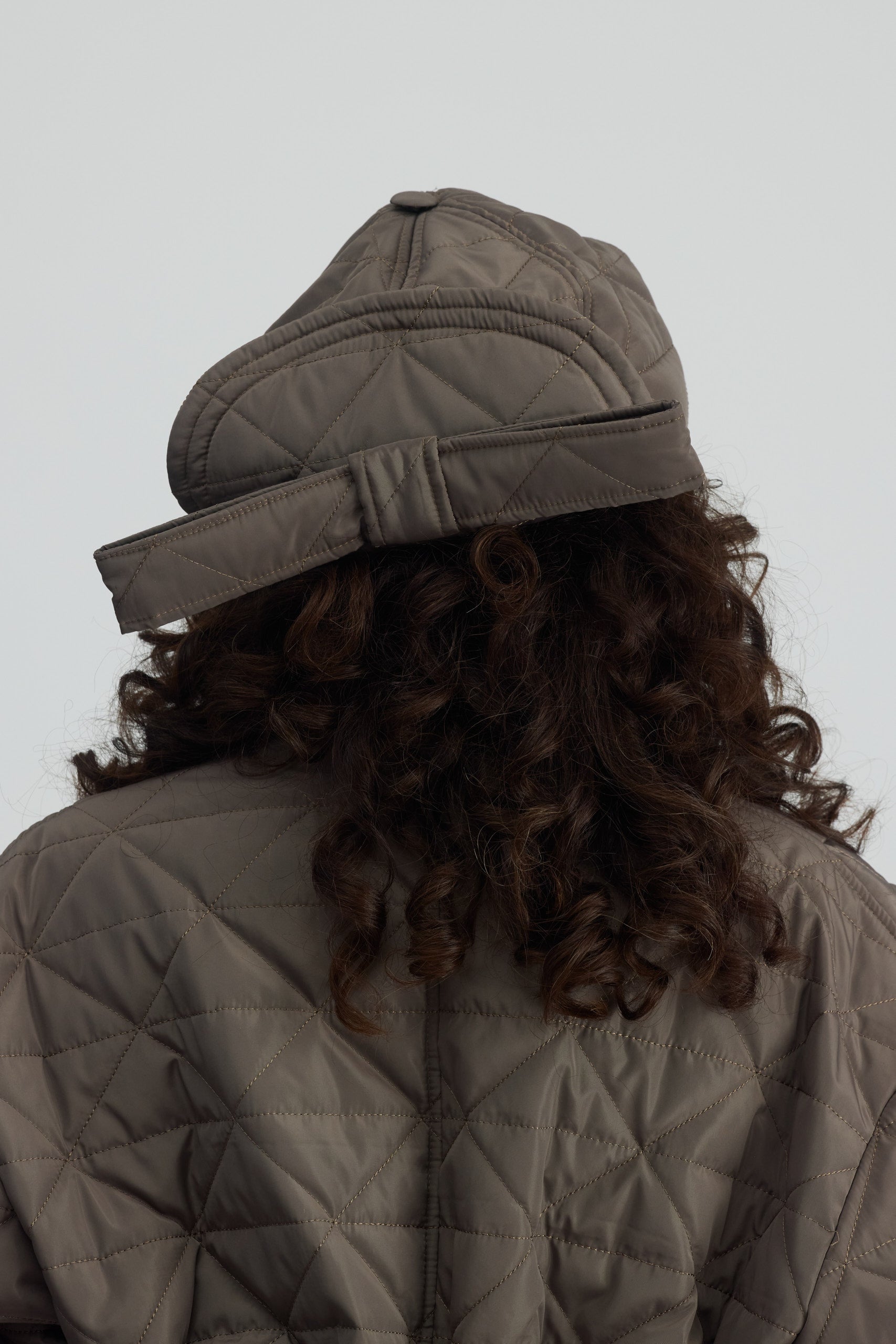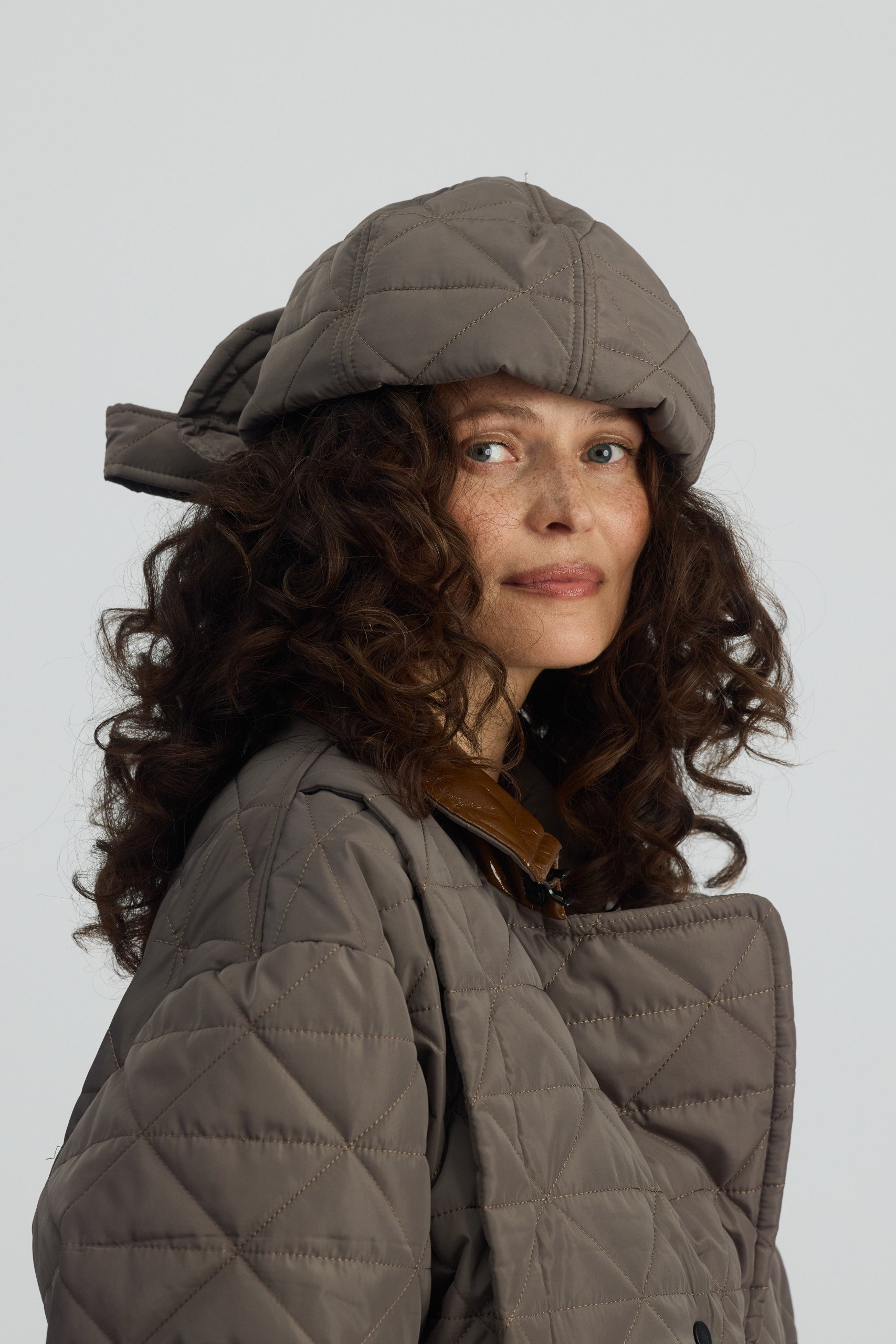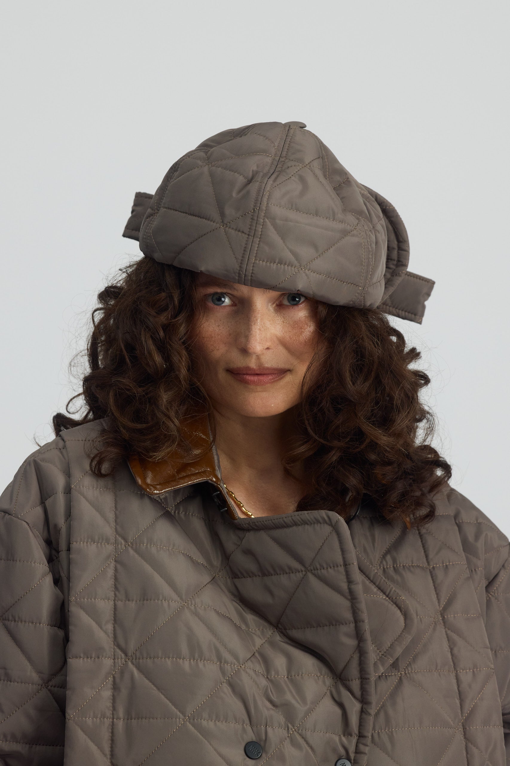 • Beret z pikowanego materiału, wykończony kokardą. Charakterystyczna faktura tkaniny, nadaje nietuzinkowego charakteru.